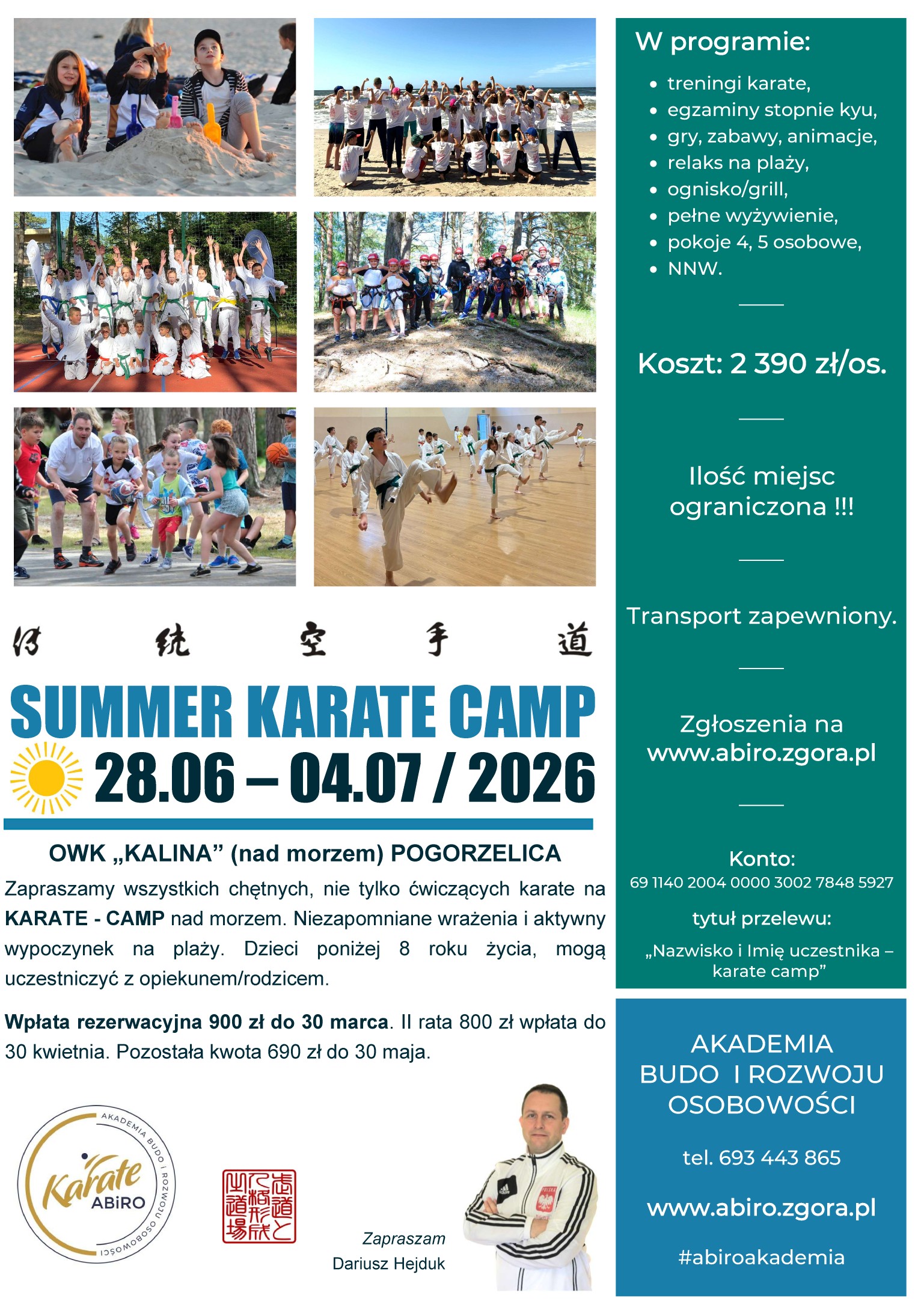 Zapraszamy nie tylko ćwiczących karate na nasz kolejny Summer Karate – CAMP nad morzem. Dzieci poniżej 8 roku życia, mogą uczestniczyć z opiekunem/rodzicem.
